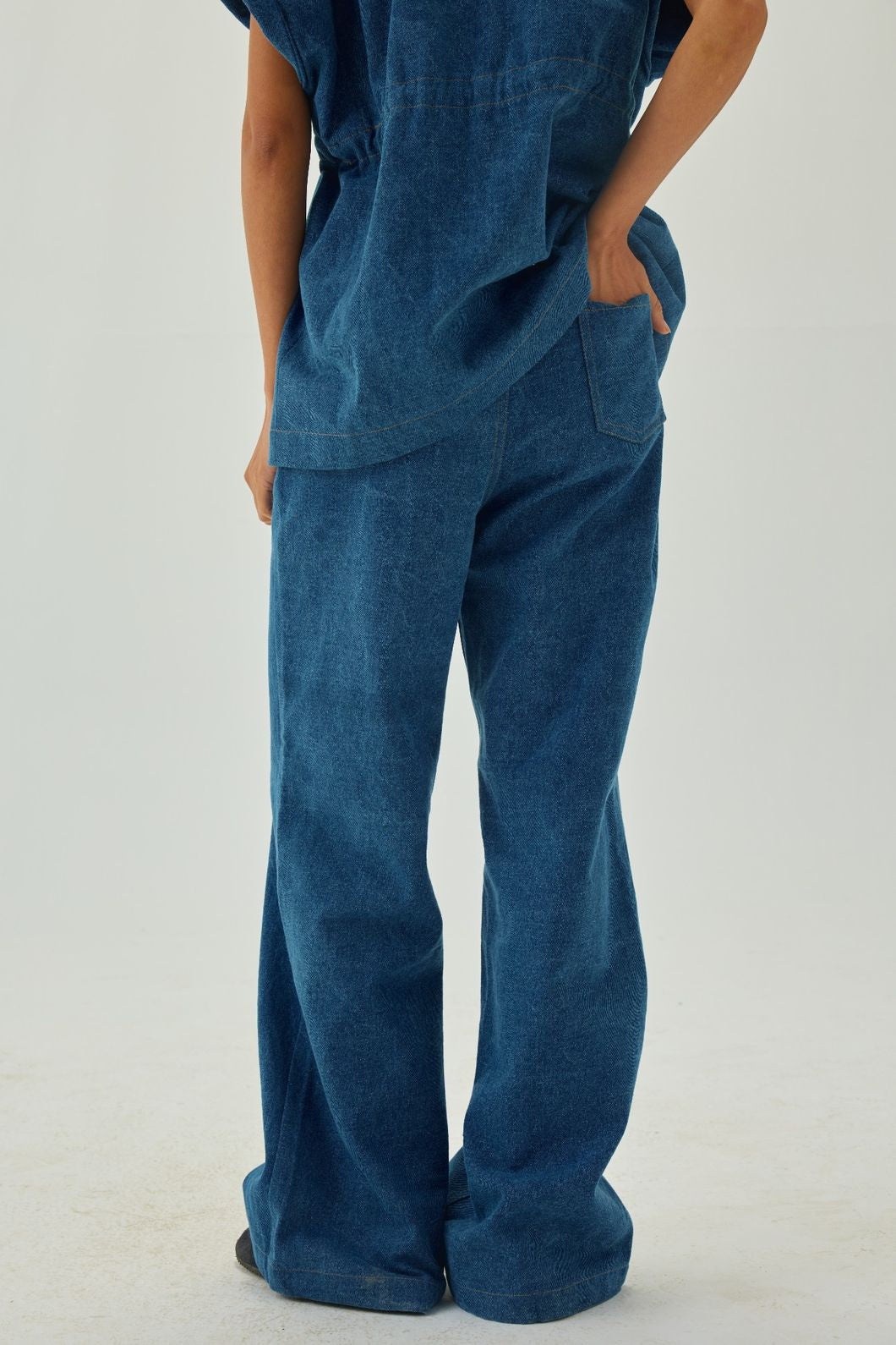 Denim Full Length Flare High Waist Pants In Blue
