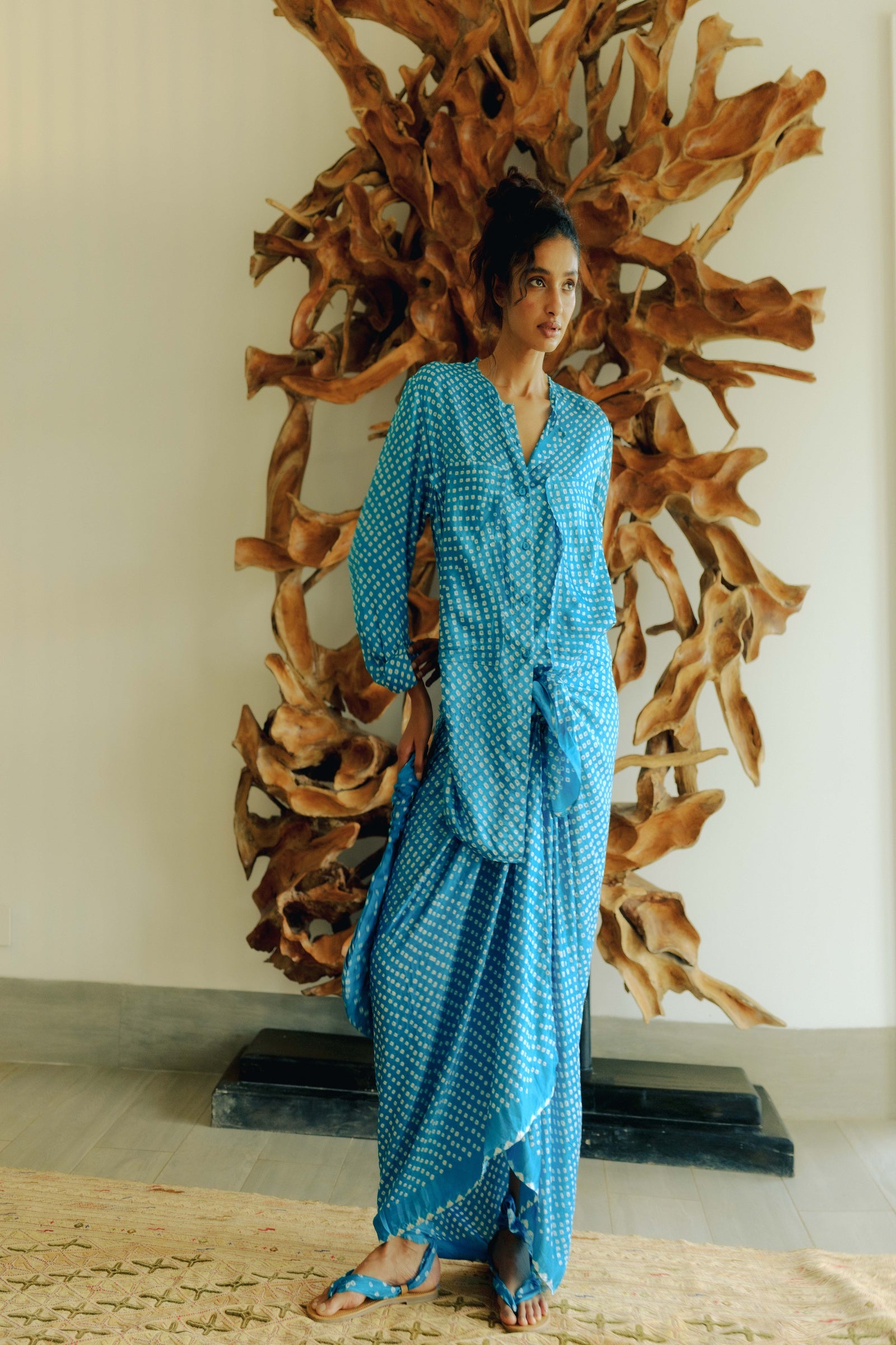 A timeless bandhani gaaji-silk piece with an effortless drape, designed for an elevated yet relaxed look.