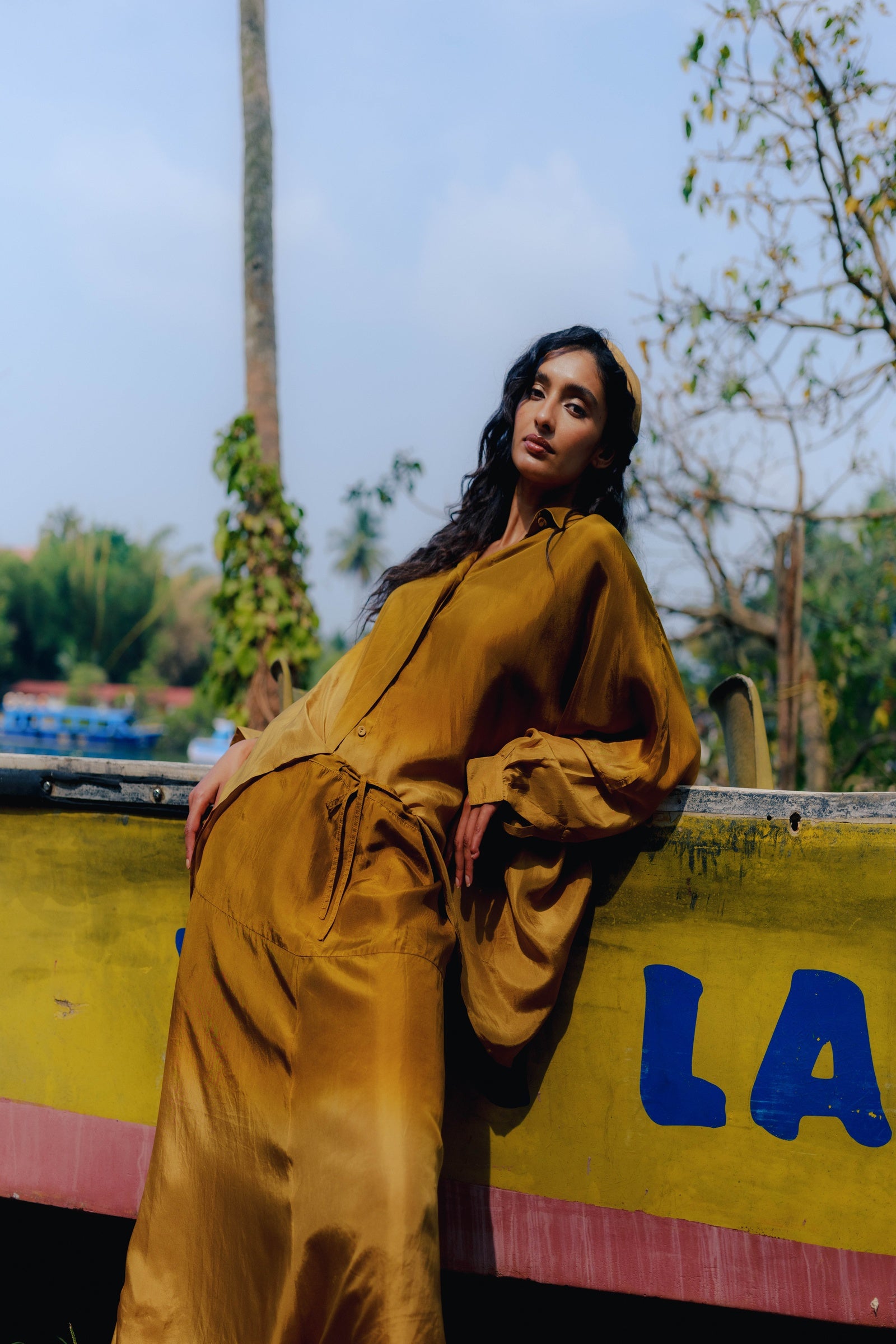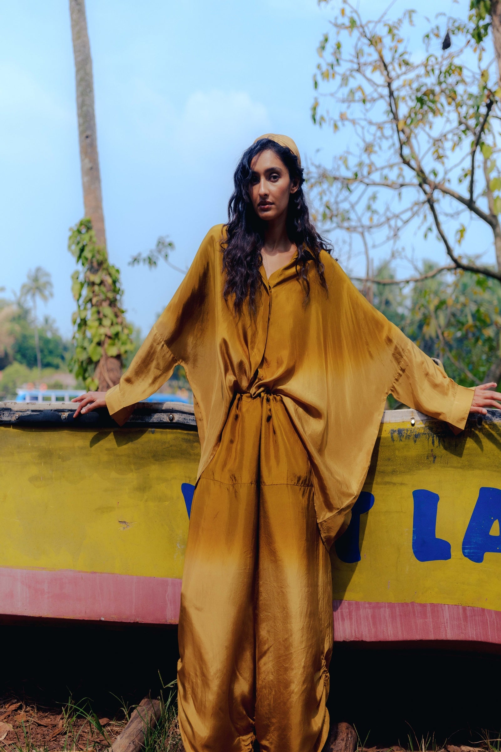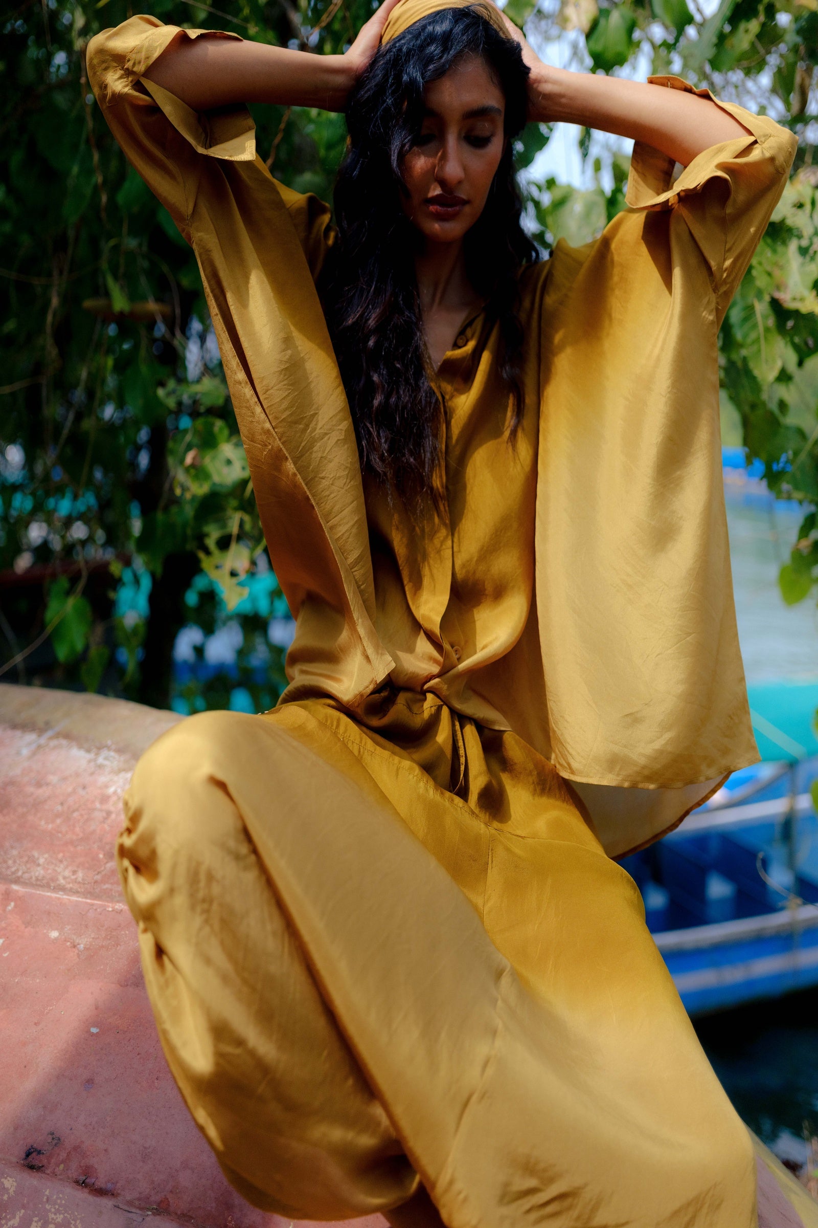 A one-size, easy-flowing ensemble crafted from lightweight silk for effortless comfort. The relaxed silhouette drapes naturally and moves with ease, offering a refined yet laid-back look that transitions seamlessly from lounging to stepping out.