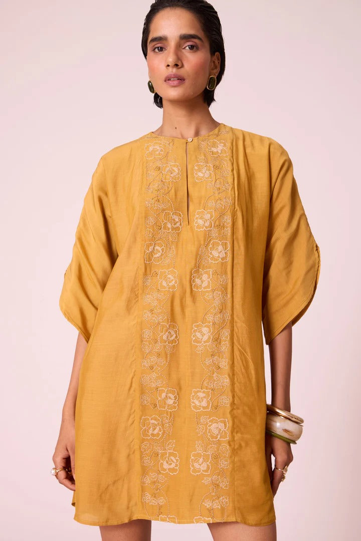 Zarah Yellow Embroidered Dress