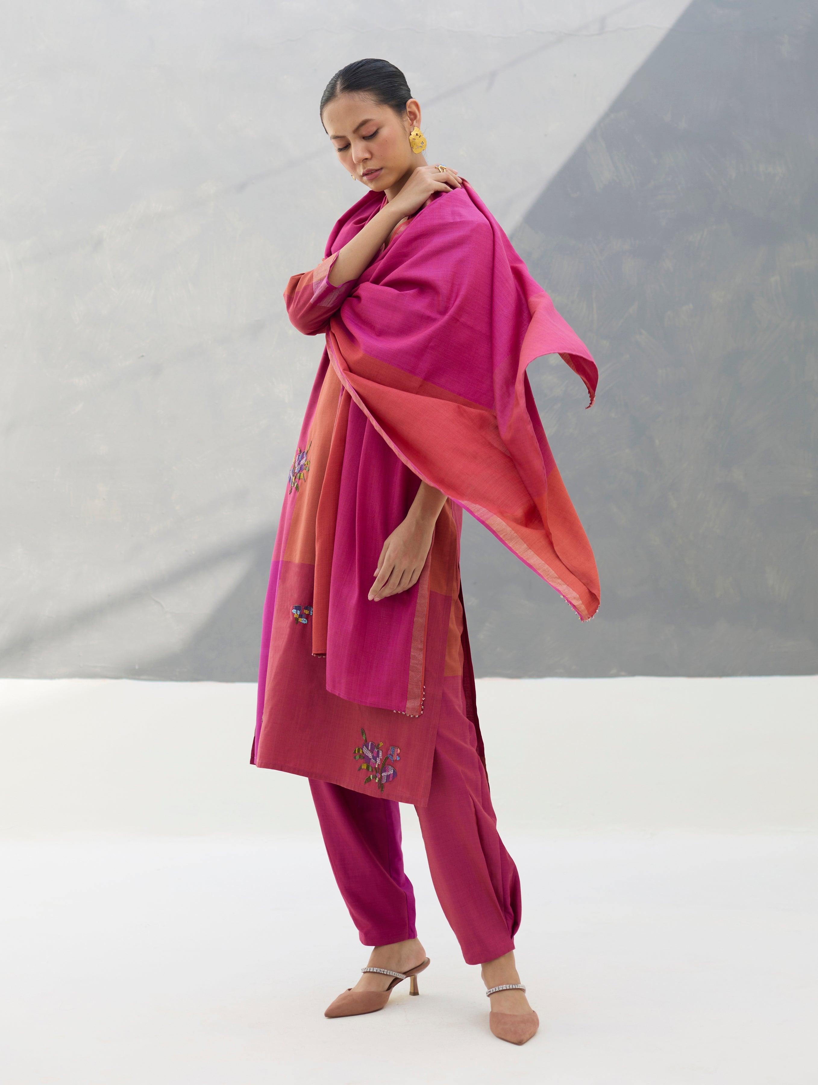Firo Eri Silk Metallic Scarf/Dupatta In Rose