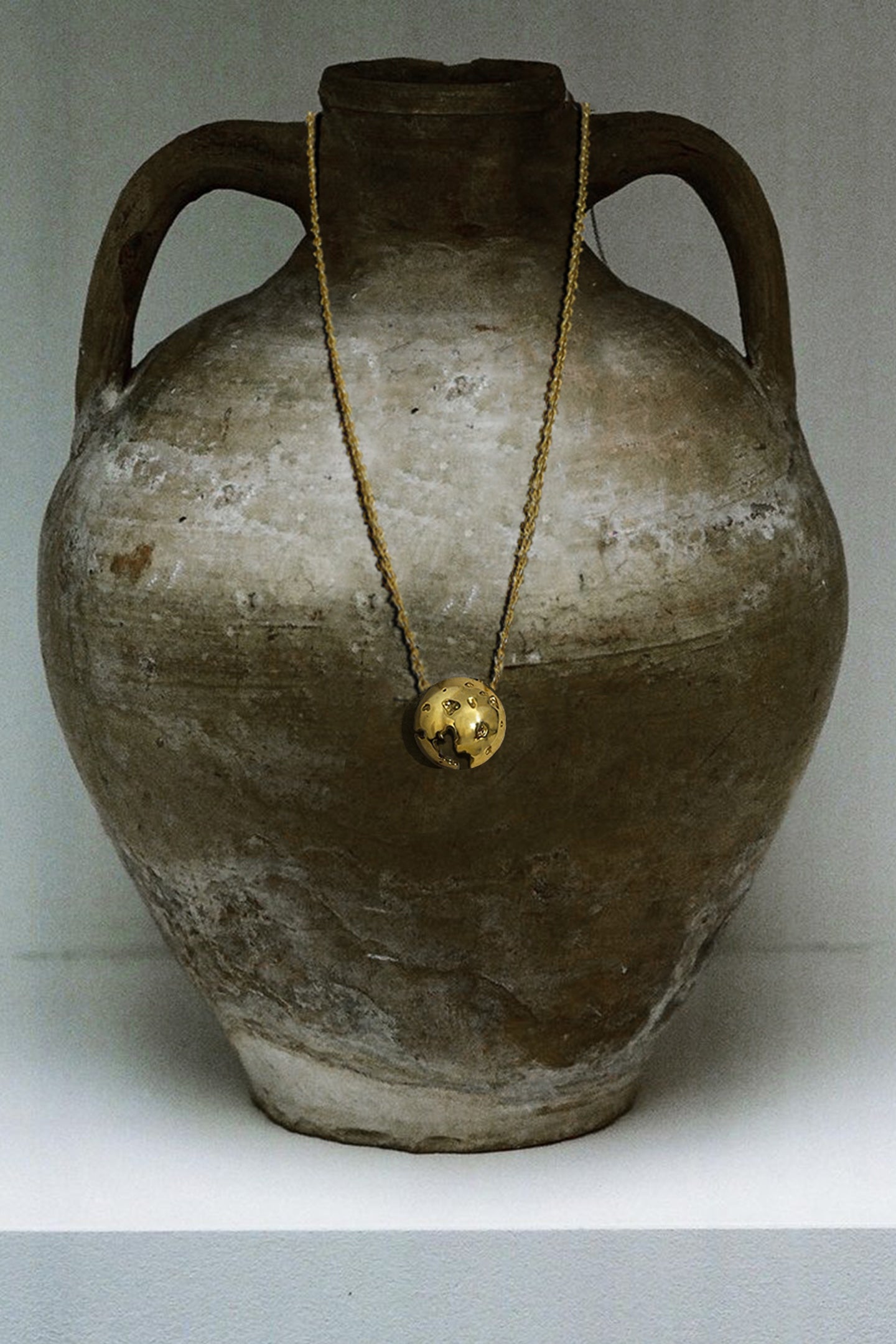 The jewellery piece is made in pure brass, plated in 24K gold and finished with a micro anti-tarnish coat.