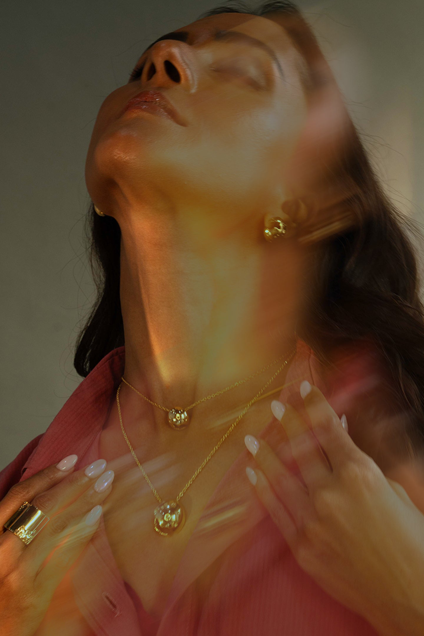 The jewellery piece is made in pure brass, plated in 24K gold and finished with a micro anti-tarnish coat.