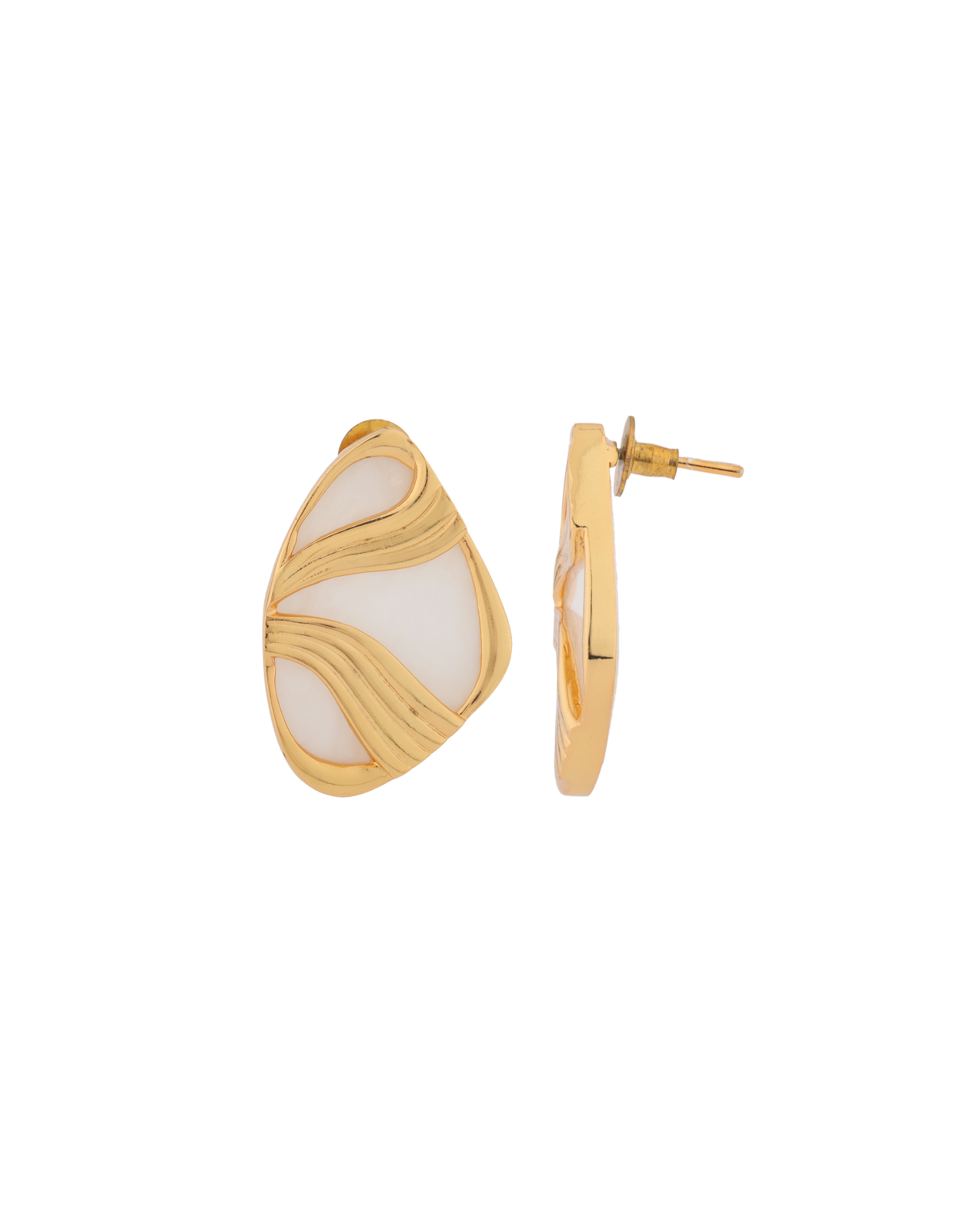 Elevate your everyday elegance with the Ebo Studs from Anaash. Crafted from hypoallergenic brass and adorned with lustrous Mother of Pearl, these exquisite studs feature 22Kt gold plating that catches the light beautifully. Weighing just 6.5 grams, this pair brings timeless sophistication to any occasion with effortless grace.