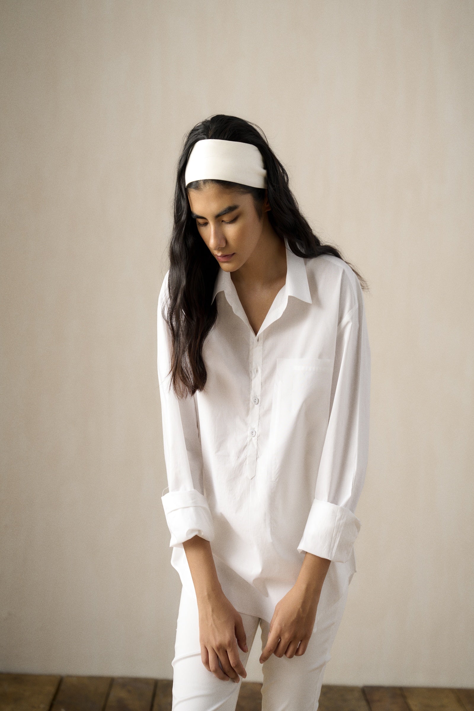 Experience everyday luxury in our crisp cotton set featuring a classic oversized shirt and tailored Capri pants. Designed for effortless sensuality, this refined silhouette moves with ease from day to night.