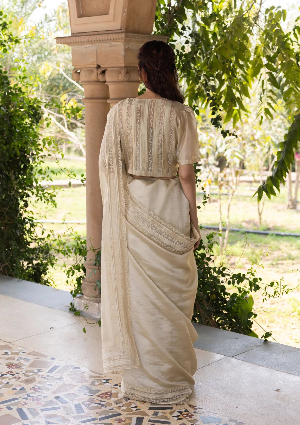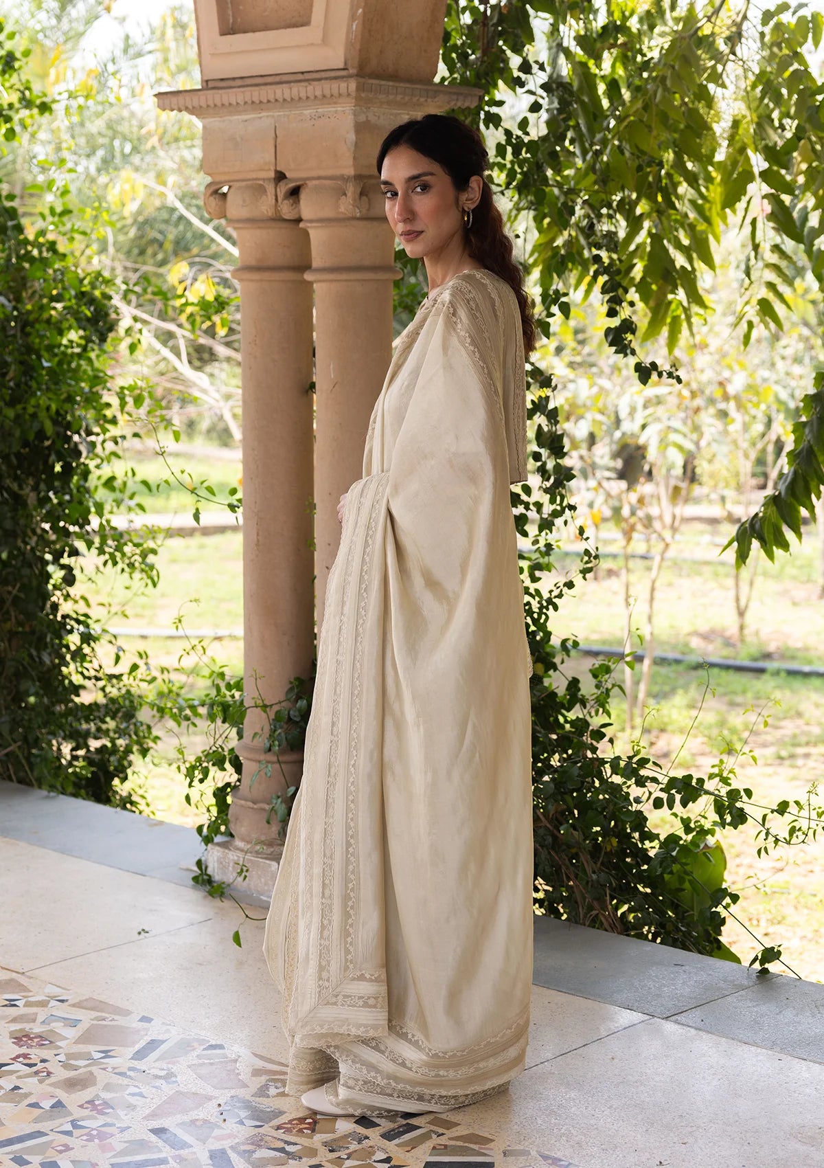 Subtle as a sigh, the Whispering Ivy Beige Saree captures the quiet poetry of still mornings and soft light. Handwoven in organza mulberry silk, its delicate embroidery and refined stitchwork trace the borders like ivy trailing on old stone—timeless, tender, and meticulously rendered in every thread. Pair it with the Whispering Ivy Beige Blouse to complete the look (can be purchased separately)